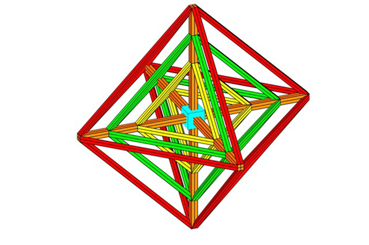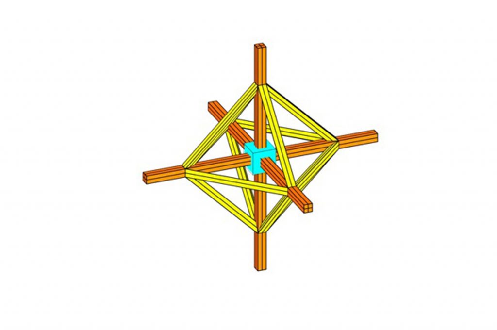 Punto de partida octaedro regular formado por aristas prismático triangulares regulares.
